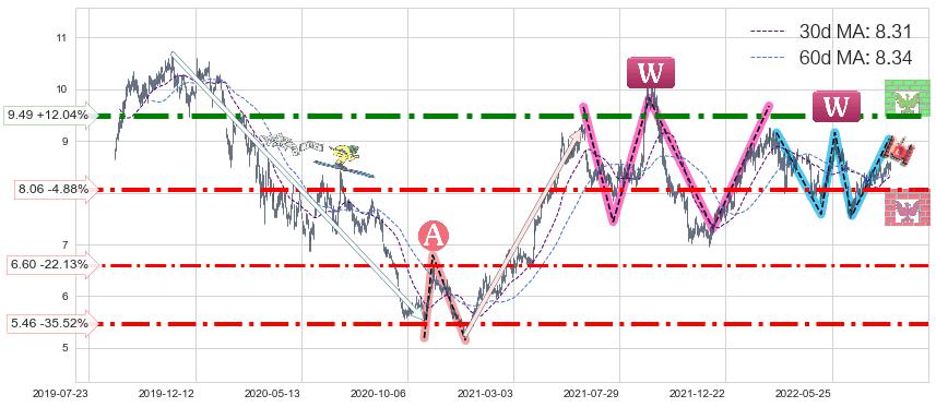 ♘ 支撑价格位8.06,可信任强度71.95%,距离最后交易2022-08-12形成的收盘价格8.47相差 -4.88%