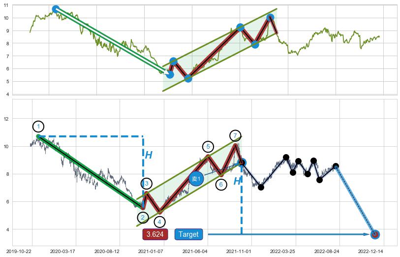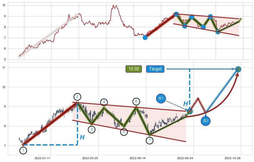 ➣ 最小中继整理涨幅→𝐇: 2.160 (𝐇旗杆的长度:旗杆起点→顶点)