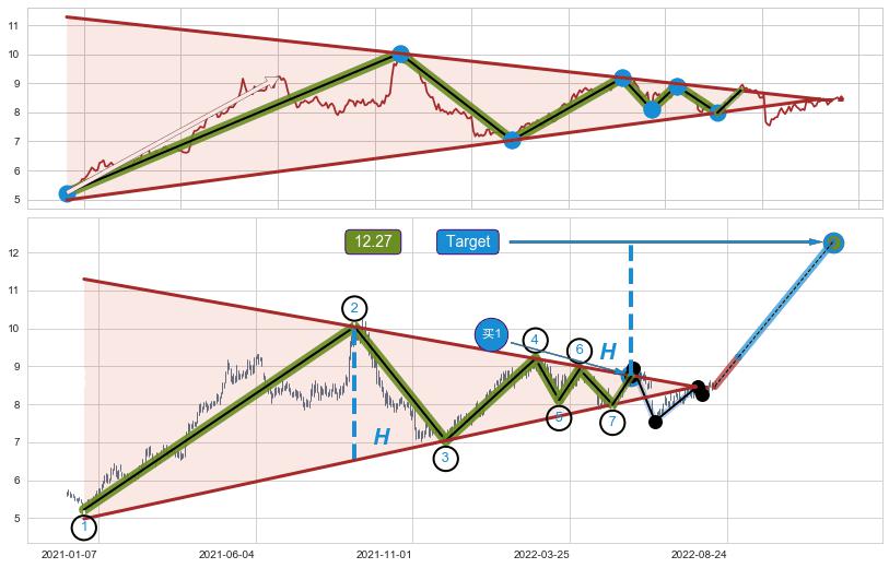 ➣ 【已确认突破】上升【对称】三角形整理 起点:2020-12-23,突破点:2022-05-27,形态共349交易日