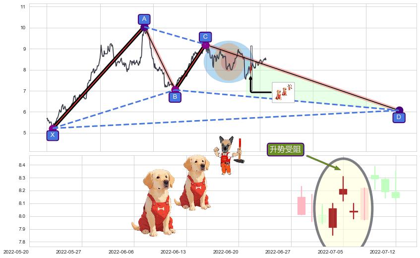 ➣ D点拟合预测价格6.07,距离最后交易收盘价格8.47相差 -28.31%