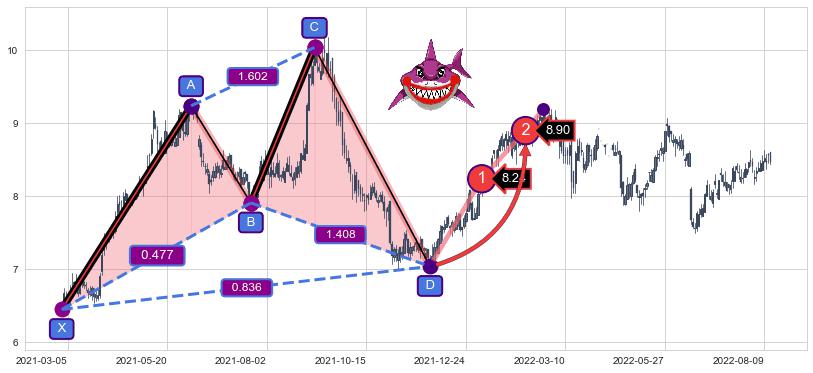 ➣ 已完成【鲨鱼】形态起点X: 2021-03-02, 终点D: 2021-11-30, 共186交易日