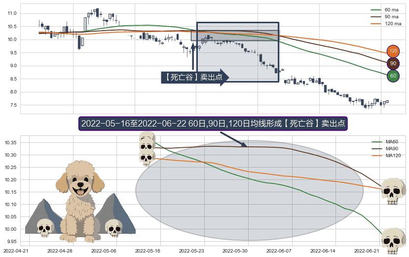 形态多维评估: ⚀ 2022-05-17-日至2022-06-22-日显现 60日-90日-120日均线 【死亡谷】卖出点 看空信号,后市看跌,卖出