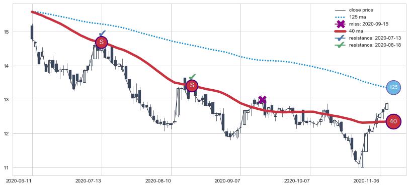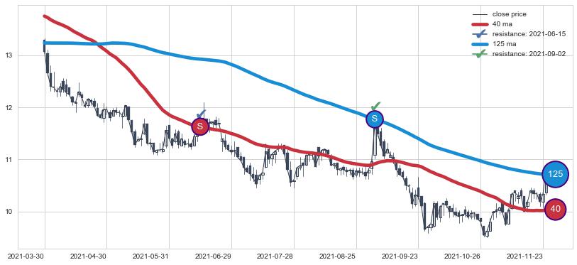 下跌趋势2021-03-30-2021-11-24,均线40, 125确认关键阻力2处