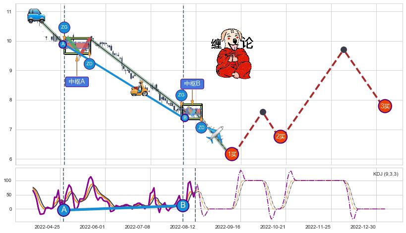 ➣ 【未完成】缠论 起点:2022-03-30, 完成第1中枢A,完成第2中枢B,到达2022-08-12