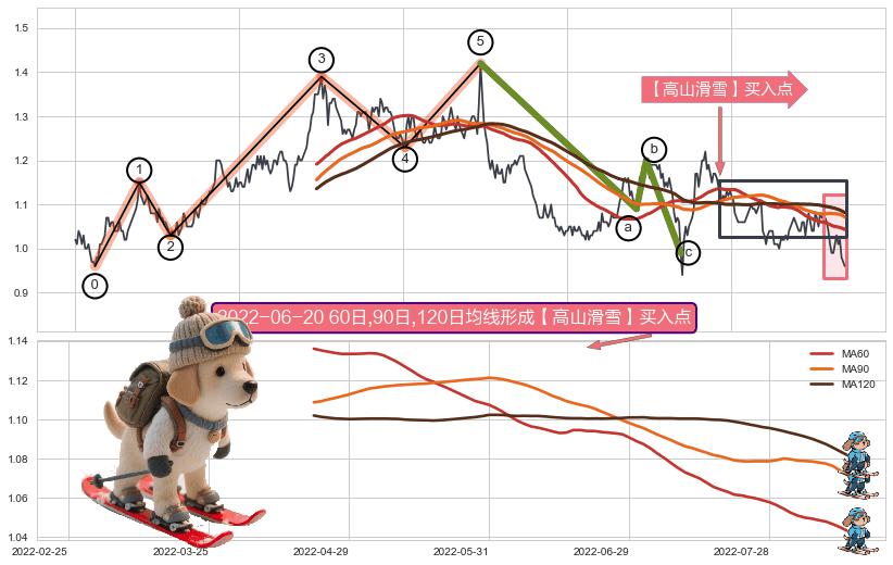 | 5 🅚:徐缓下降 ➕ 🎢:【死亡谷】卖出点均线组合卖出点信号形成后,猜想后续破位下跌,沿着向下的尖头三角下跌 ☞ 看空信号 ⇥ 【均线】交织【🅚线】⇥ 综合量化分数: 31 | > |
