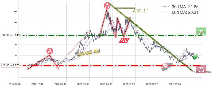 ➣ 【仅预测突破】最后价格:21.75与预测突破价格:30.22→【空间中等】后续最小【整理】第一目标价格→(2023-01-02: 80.30 )
