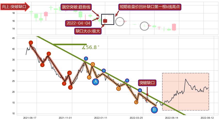 ➢ 最后的下跌趋势2021-08-04至2022-04-28:存在突破迹象,后续小反弹或者反转上涨