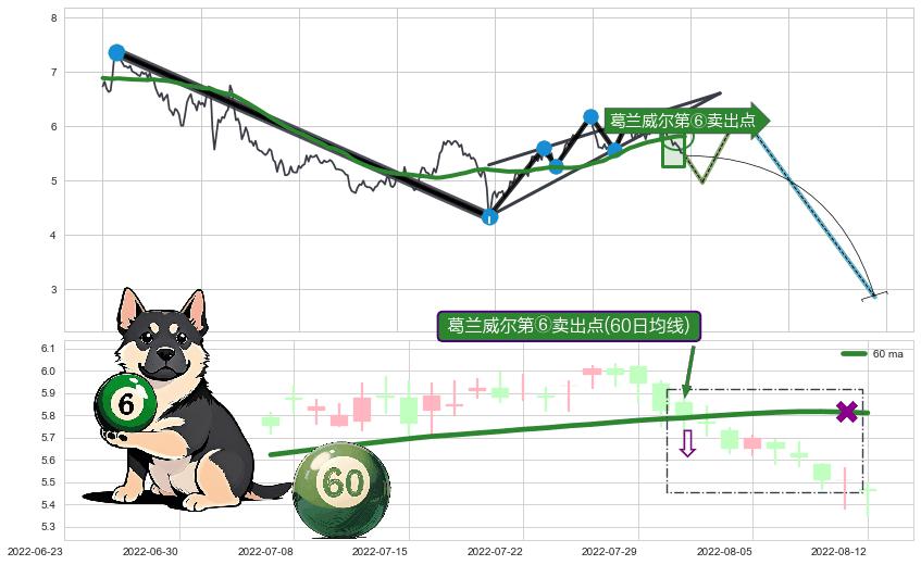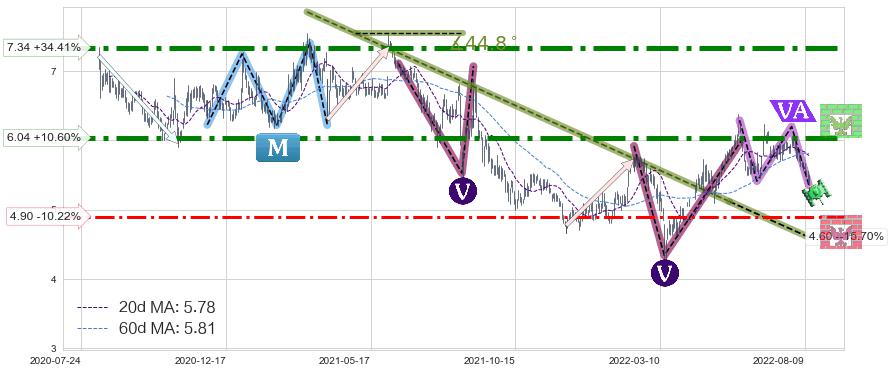 ♘ 阻力价格位6.04,可信任强度95.67%,距离最后交易2022-08-12形成的收盘价格5.46相差 +10.60%