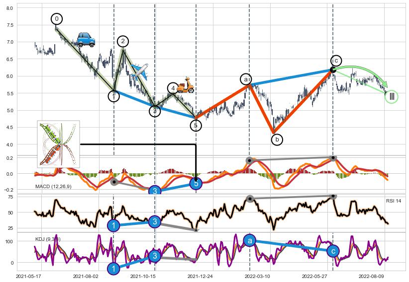 ➢ 1,3,5驱动浪MACD, RSI, KDJ走势都出现【常规背离】反转信号增强