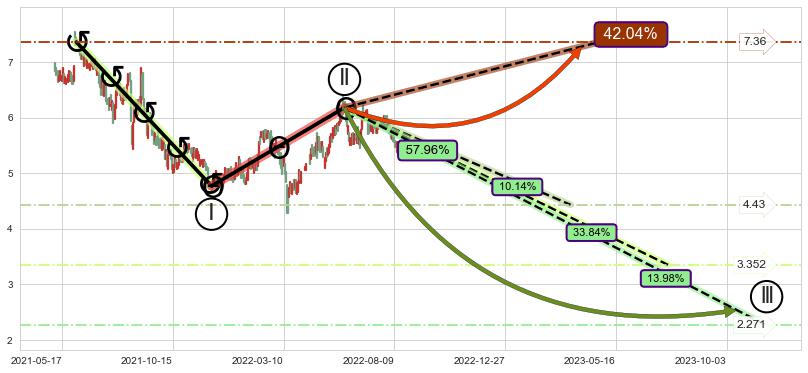 ➣ 大趋势循环浪继续向下概率57.96%
