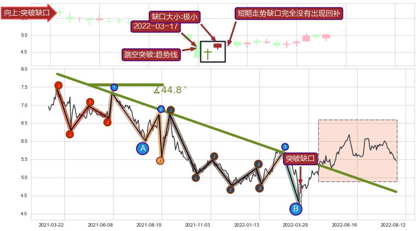 ⚔️ 2021-03-11-2022-05-25下跌趋势存在反转上涨[机会],其原下跌趋势的阻力位(4.60)已被突破[强支撑信号],原下跌趋势角度: 44.8˚