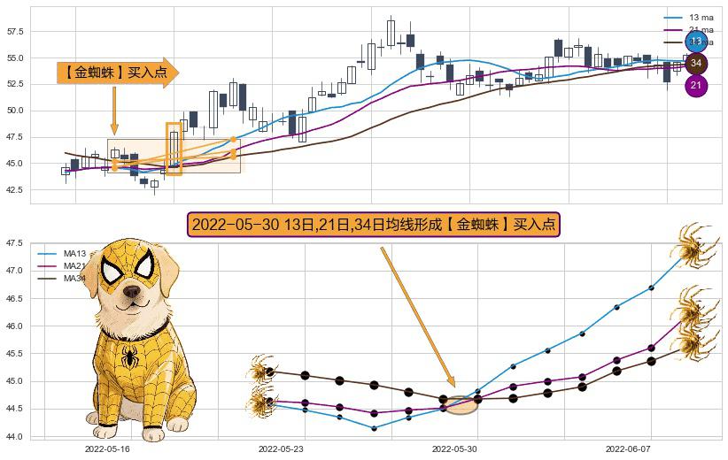 ⚀ 2022-05-30日显现 13日-21日-34日均线 【金蜘蛛】买入点 看多信号,后市看涨,买入