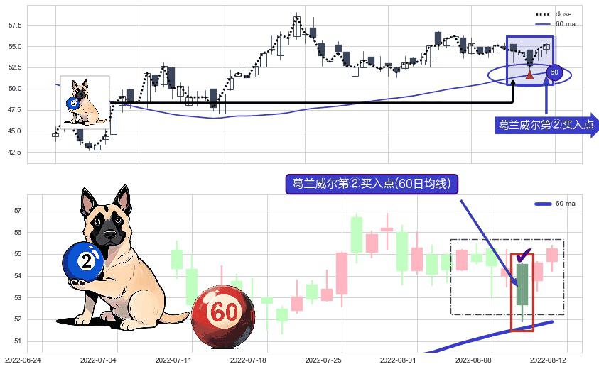 ⚀ 2022-08-10-日显现 葛兰威尔均线 60日均线 第②买入点 上升趋势的中继信号,后市看涨,买进信号