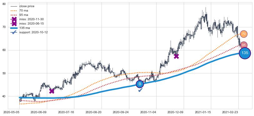 ⚄ 价格在均线获取支撑后已再次向上反弹了【较长】距离, 第②买入点 支撑效果得到【初步确认】