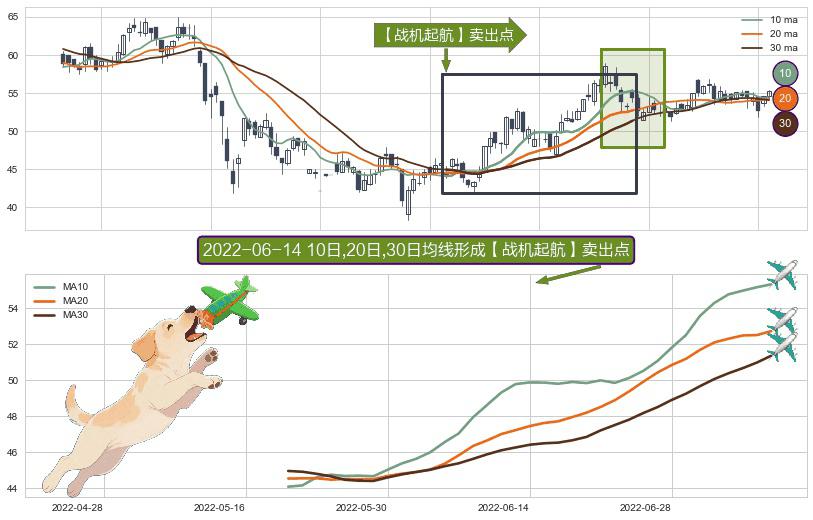 ⚀ 2022-05-19日-2022-07-08日显现 10日-20日-30日均线 【战机起航】卖出点 看空信号,后市看跌,卖出