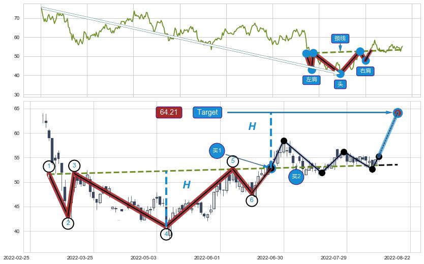 ➢ 【买1】: 激进型 买点 →(2022-06-24: 52.84 )形成突破头肩底【反转】形态