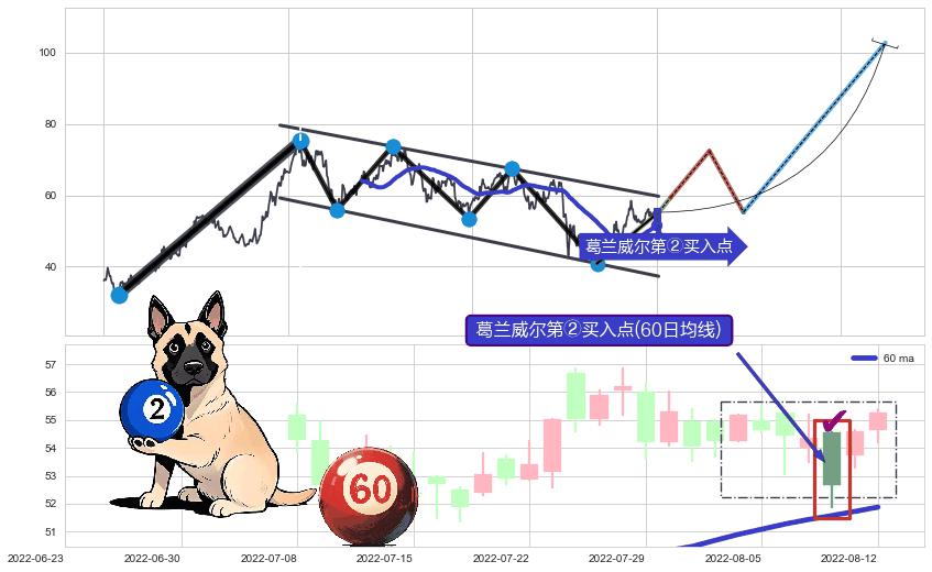 ➢ 【买0】下跌趋势线在→(2022-08-17: 59.60 )被突破,反转趋势形成