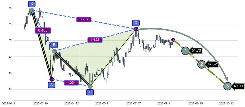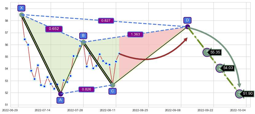 ➣ 未完成【伽利】形态起点X: 2022-06-30, 已到达C点: 2022-08-10, 预测最终D点: 2022-09-12, 共52交易日