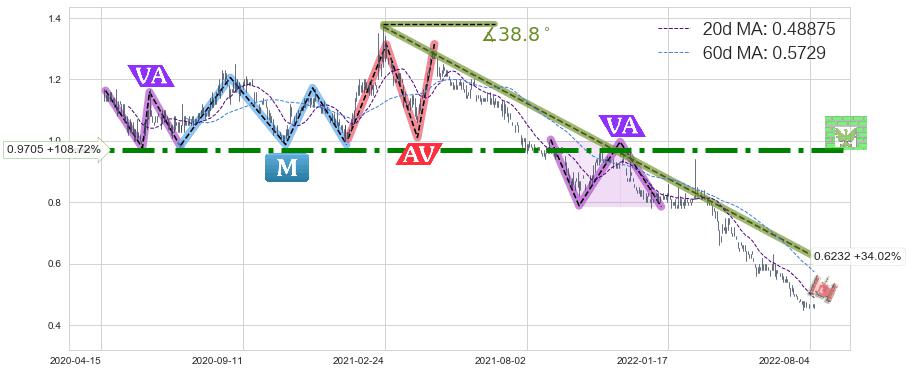 ♘ 阻力价格位0.9705,可信任强度97.63%,距离最后交易2022-08-12形成的收盘价格0.46500相差 +108.72%