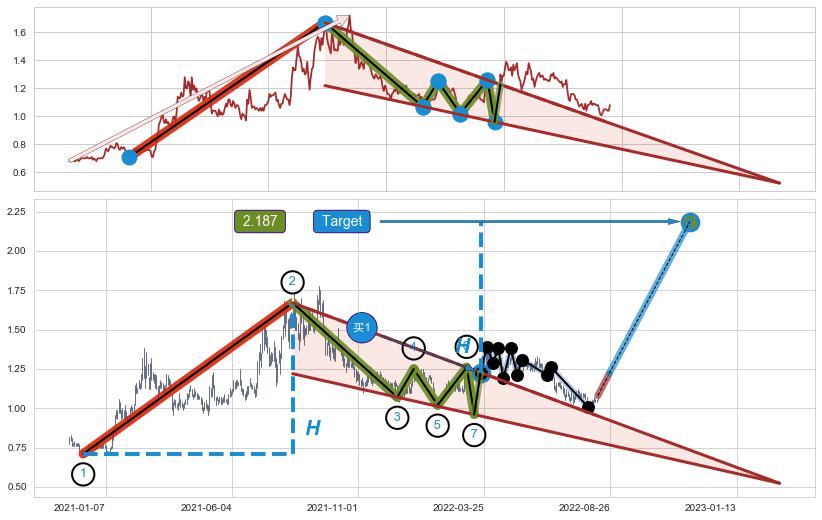 ➢ 【买1】: 激进型 买点 →(2022-03-22: 1.2273 )形成突破降🚩楔型【整理】形态