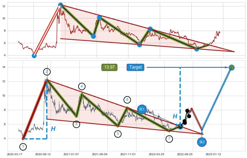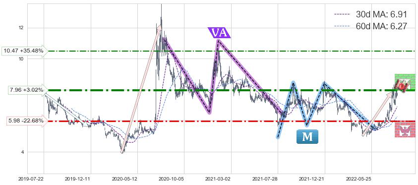 ➢ 2022-07-28到达第❶价格目标位置7.88