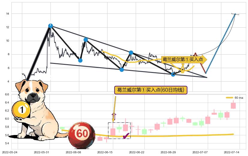➢ 收盘价(2022-07-11: 6.03 )→回踩→第一根k线高点(2022-07-07: 6.09 )