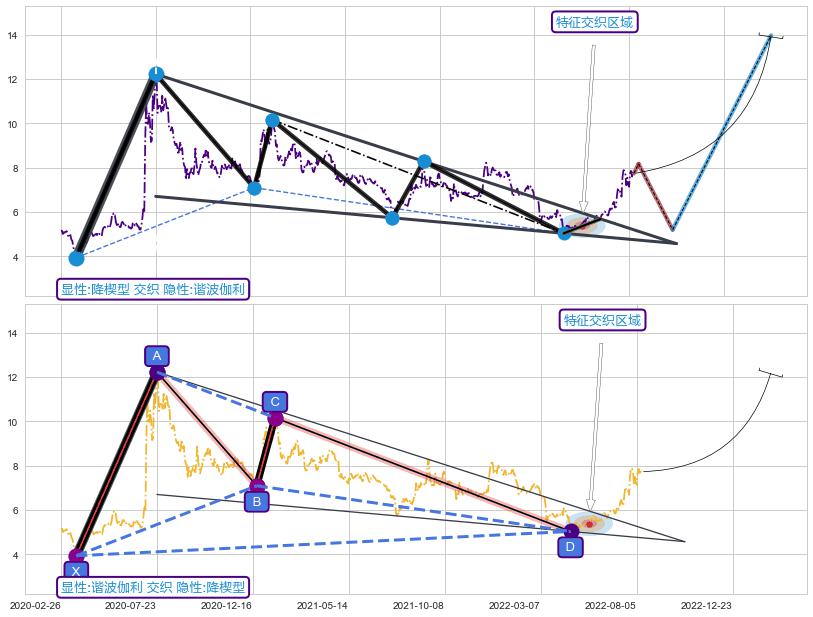 | 14 🅚:下探上涨 ➕ 📡:谐波伽利已到达d点:猜想c下行到达d点后报复性拉升上涨(均值回复) ☞ 看多信号 ⇥ 【🅚线】交织【图形】⇥ 综合量化分数: 55 | > |