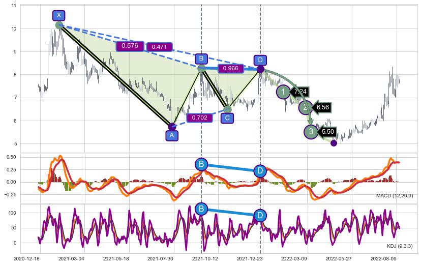 ➣ D点拟合预测价格9.89,距离最后交易收盘价格7.73相差 +27.89%
