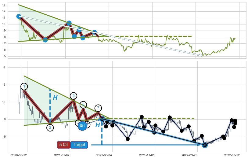 ➣ AI预测: 假定反转启动后, 第❶目标位置(2023-06-22, 8.03)