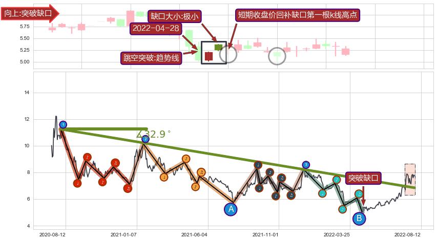 ➢ 最后的下跌趋势2020-08-03至2022-06-28:存在突破迹象,后续小反弹或者反转上涨