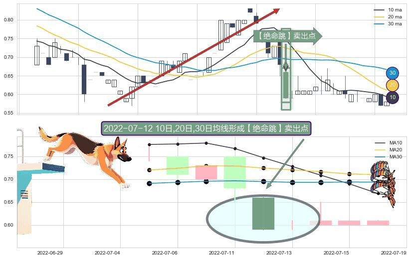 ⚀ 2022-07-12日显现 10日-20日-30日均线 【绝命跳】卖出点 看空信号,后市看跌,卖出
