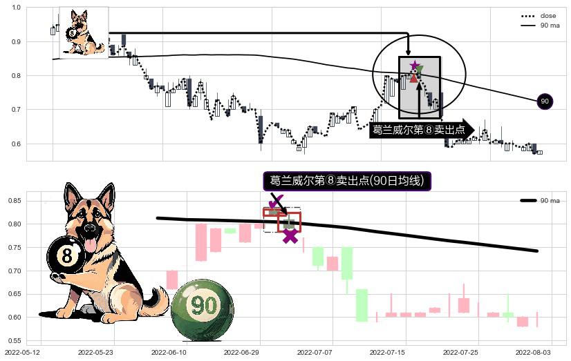⚀ 2022-07-04-日显现 葛兰威尔均线 90日均线 第⑧卖出点 下降趋势的中继信号,后市看跌,卖出信号