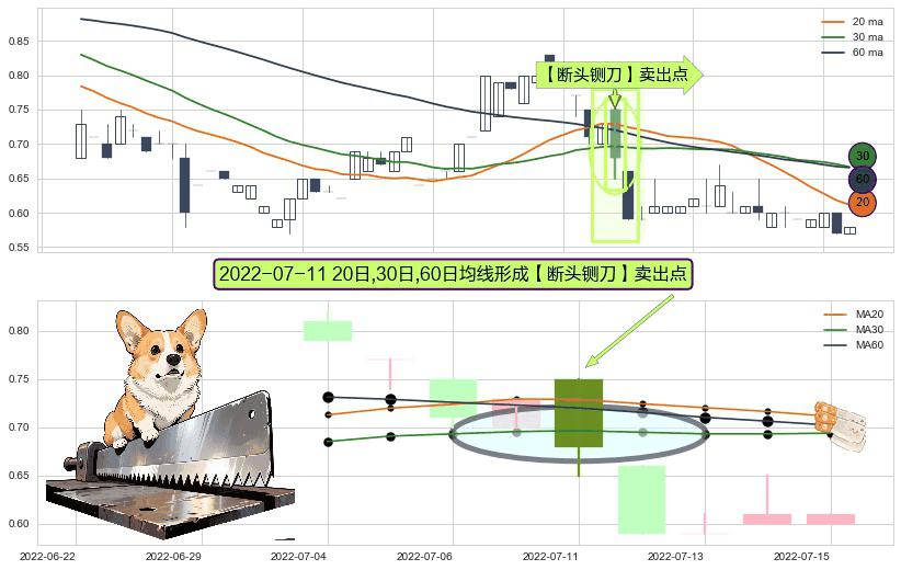 ⚀ 2022-07-11日显现 20日-30日-60日均线 【断头铡刀】卖出点 看空信号,后市看跌,卖出