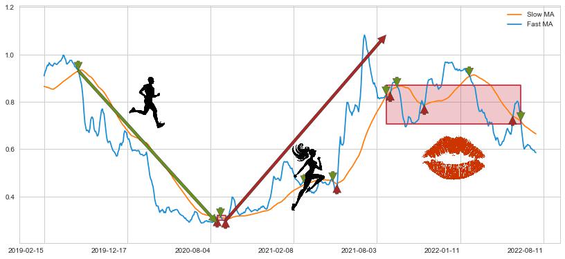 2021-08-18至2022-07-11 慢线与快线多次接触,存在上下穿越,有缠绕