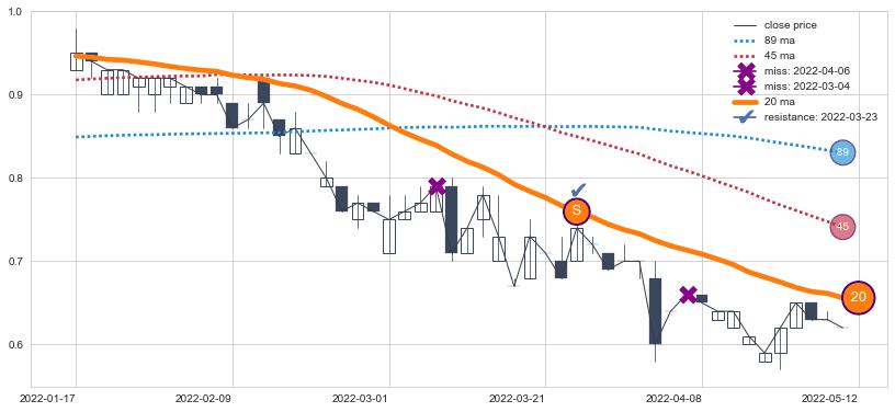 ⚂ 2022-06-30-日均线向上突破,2022-07-04-日重新下穿均线破位,均线阻力再次生效