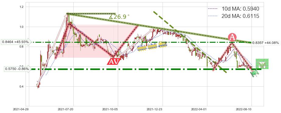➣ 【已确认突破】最后价格:0.5800与最小【整理】第一目标价格→(2022-08-30: 0.45328 )相较: 下跌空间【较小】