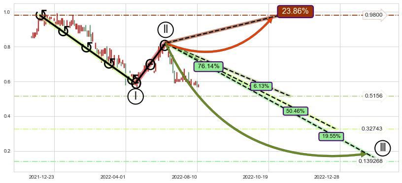 ➣ 循环浪继续向下【平均值】位置(2022-12-23, 0.32743),匹配聚类样本比例66.27%, 可能性概率50.46%