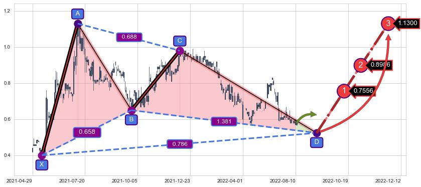 ➣ 未完成【伽利】形态起点X: 2021-05-17, 已到达C点: 2021-12-09, 预测最终D点: 2022-09-07, 共261交易日