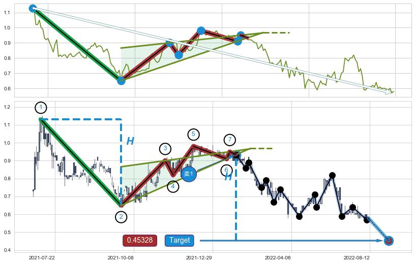 ➣ AI预测: 假定反转启动后, 第❶目标位置(2022-10-13, 0.7556)