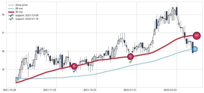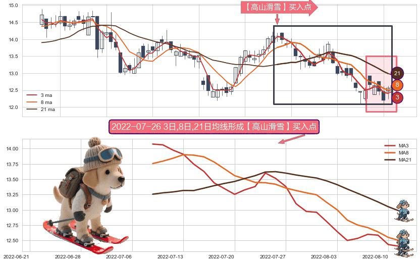 ⚀ 2022-07-08日-2022-08-11日显现 3日-8日-21日均线 【高山滑雪】买入点 看多信号,后市看涨,买入