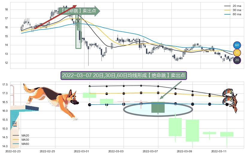 ⚀ 2022-03-07日显现 20日-30日-60日均线 【绝命跳】卖出点 看空信号,后市看跌,卖出