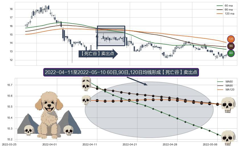 ⚀ 2022-04-12-日至2022-05-10-日显现 60日-90日-120日均线 【死亡谷】卖出点 看空信号,后市看跌,卖出