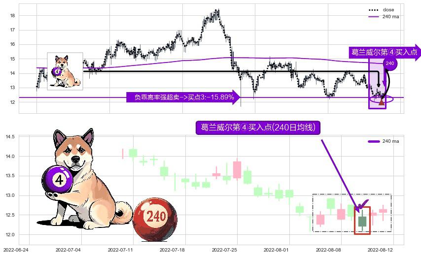 ⚀ 2022-08-10-日显现 葛兰威尔均线 240日均线 第④买入点 下降趋势均值回复的短线反弹信号,后市看涨,买进信号