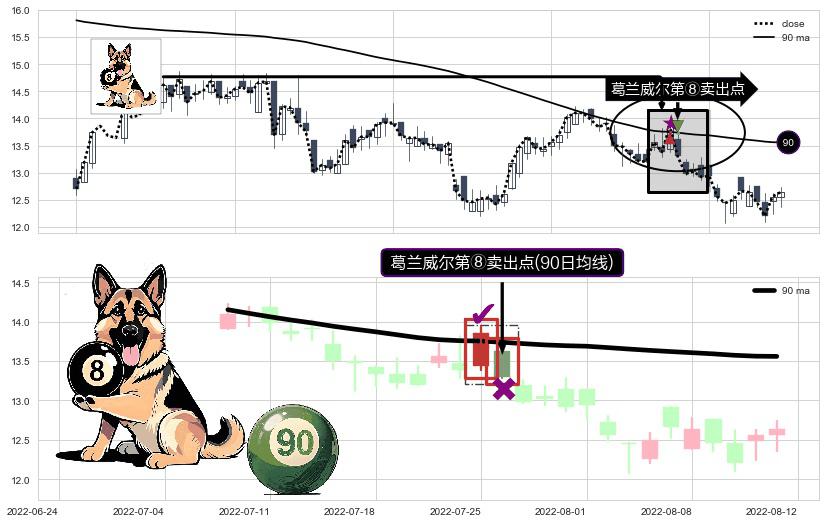 ⚀ 2022-07-26-日显现 葛兰威尔均线 90日均线 第⑧卖出点 下降趋势的中继信号,后市看跌,卖出信号