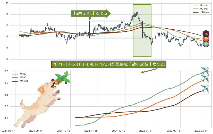 ⚀ 2021-10-22日-2022-03-07日显现 60日-90日-120日均线 【战机起航】卖出点 看空信号,后市看跌,卖出