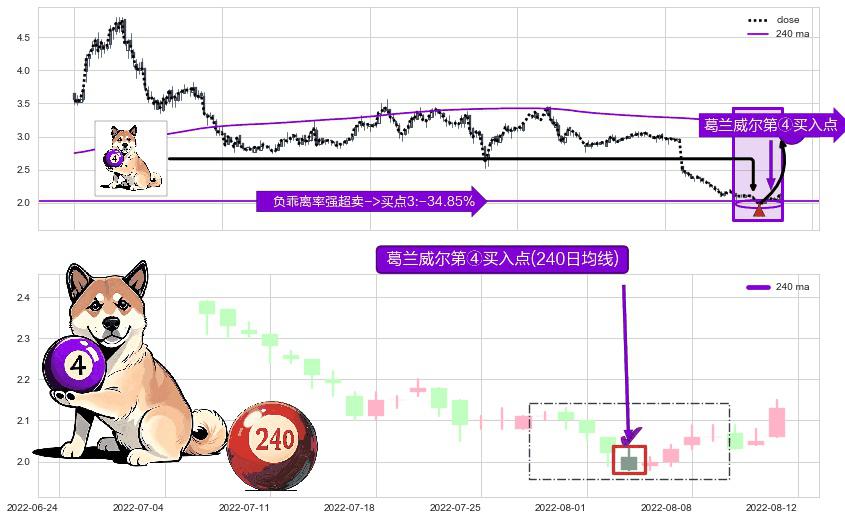 ⚀ 2022-08-03-日显现 葛兰威尔均线 240日均线 第④买入点 下降趋势均值回复的短线反弹信号,后市看涨,买进信号