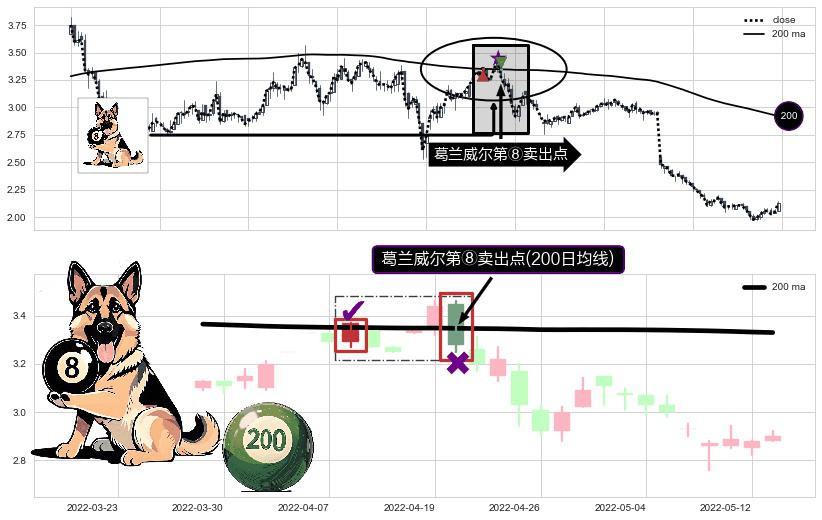 ⚀ 2022-04-20-日显现 葛兰威尔均线 200日均线 第⑧卖出点 下降趋势的中继信号,后市看跌,卖出信号
