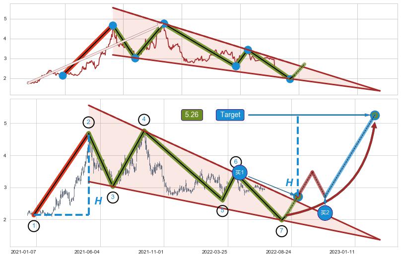 ➢ 最小中继整理涨幅→𝐇: 2.540 (𝐇楔型旗杆的长度:楔型起点→顶点)
