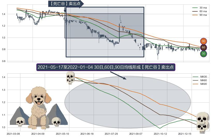 ⚀ 2021-05-20-日至2022-01-04-日显现 30日-60日-90日均线 【死亡谷】卖出点 看空信号,后市看跌,卖出