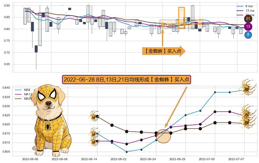 ⚀ 2022-06-28日显现 8日-13日-21日均线 【金蜘蛛】买入点 看多信号,后市看涨,买入